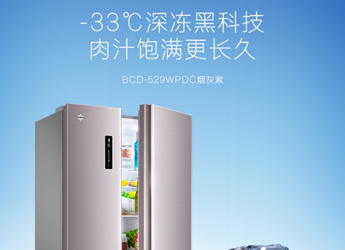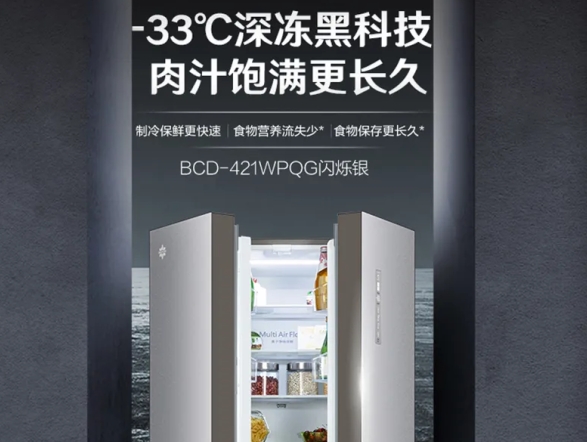 晶弘十字對開門冰箱BCD-421WPQG閃爍銀